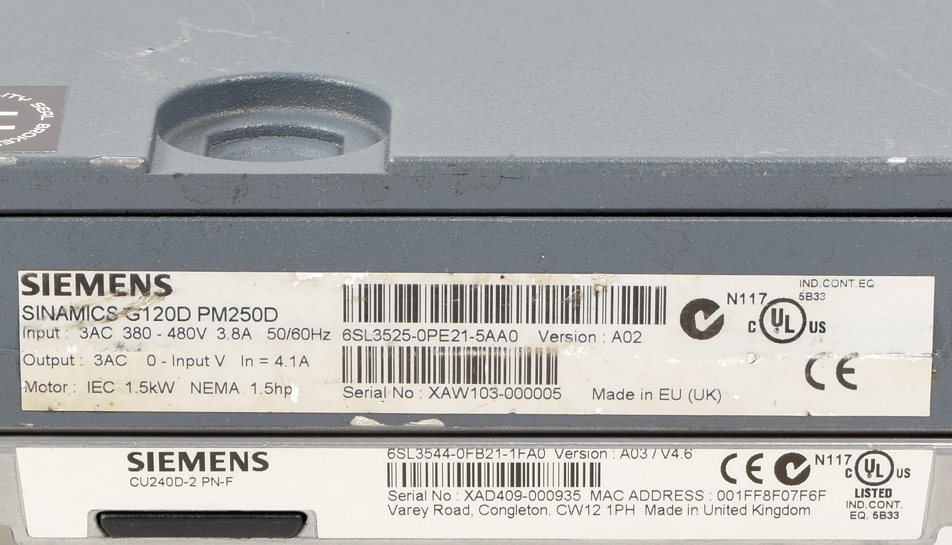 Siemens Sinamics G120D PM250D, 6SL3525-0PE21-5AA0 + 6SL3544-0FB21-1FA0