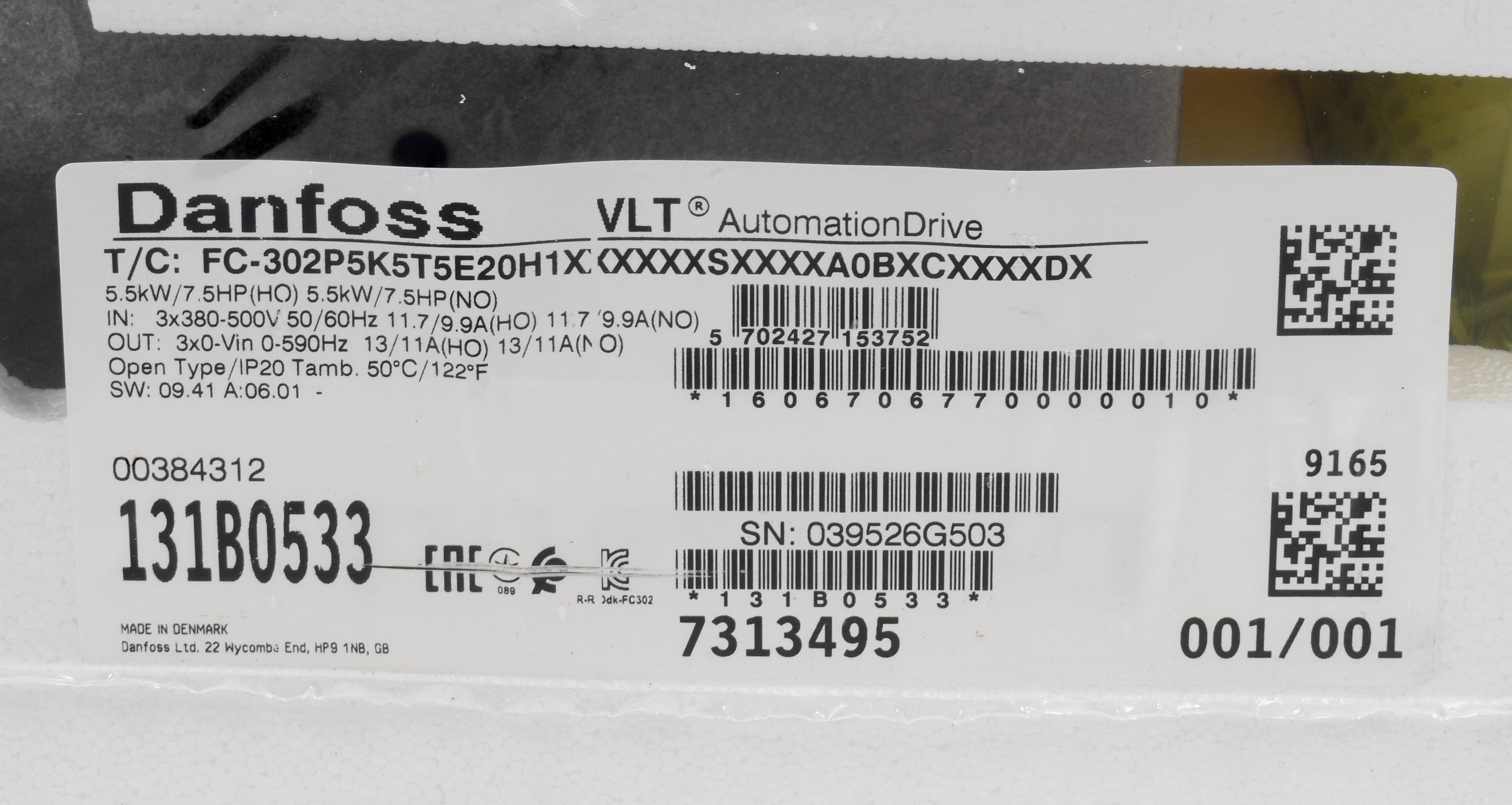 Danfoss Umrichter VLT FC302, 5,5kW, FC302-P5K5T5E20H, 131B0533