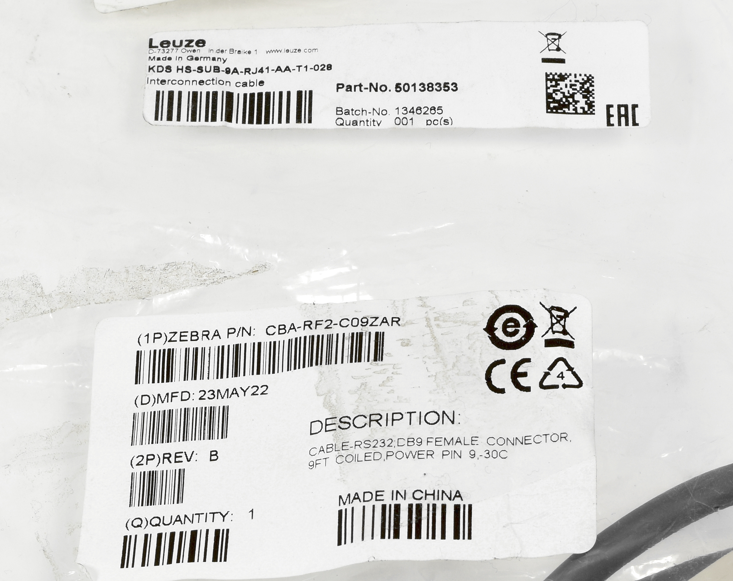 Product information "Verbindungskabel Handscanner, Leuze, 50138353, Zebra, CBA-RF2-C09ZAR"