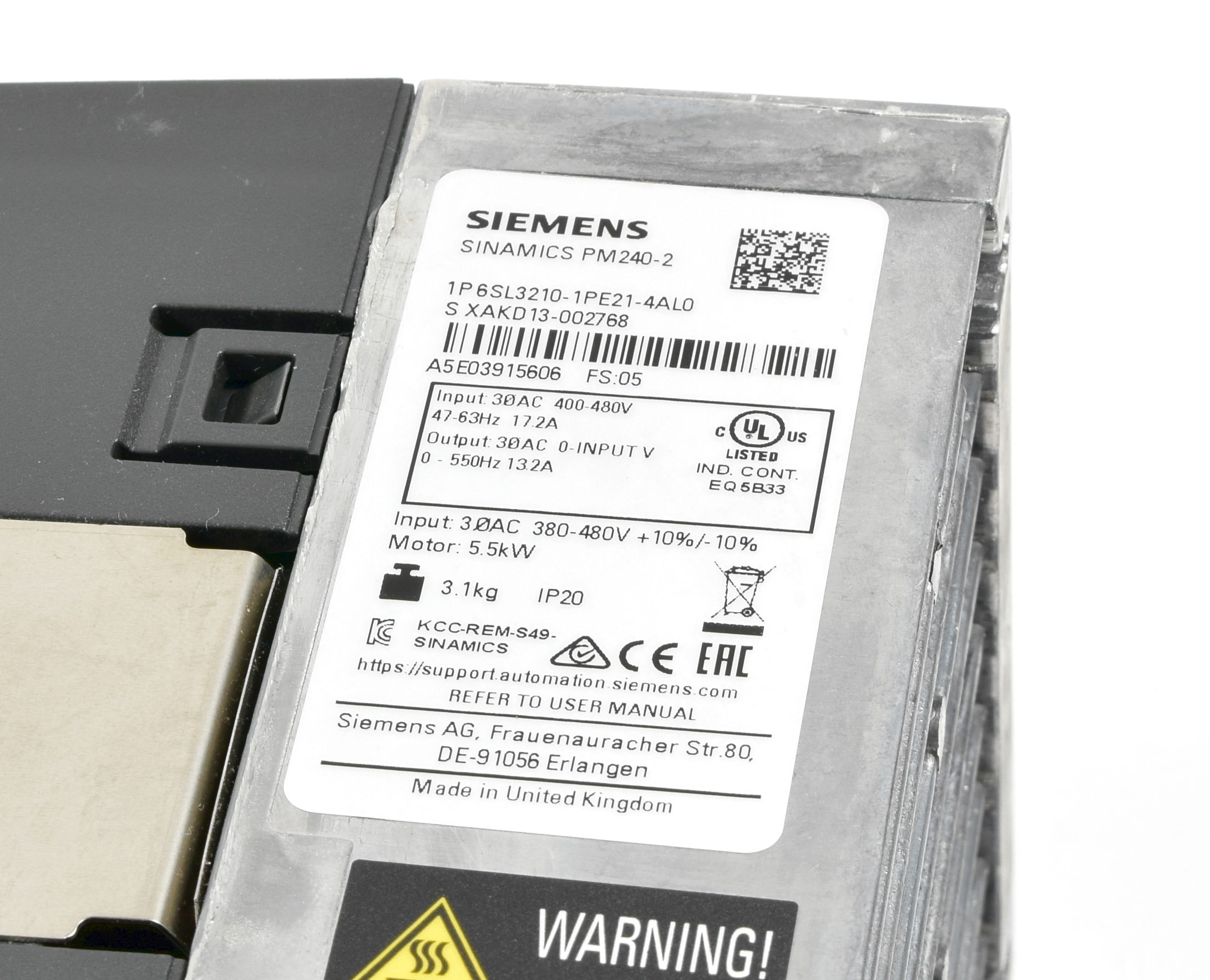 Siemens Sinamics Power Module PM240-2, 6SL3210-1PE21-4AL0, 6SL3 210-1PE21-4AL0